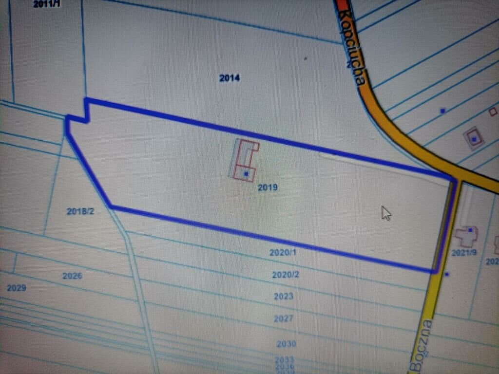 -dwie działki o nr. 2014 i 2019 przylegające do siebie u zbiegu ulic